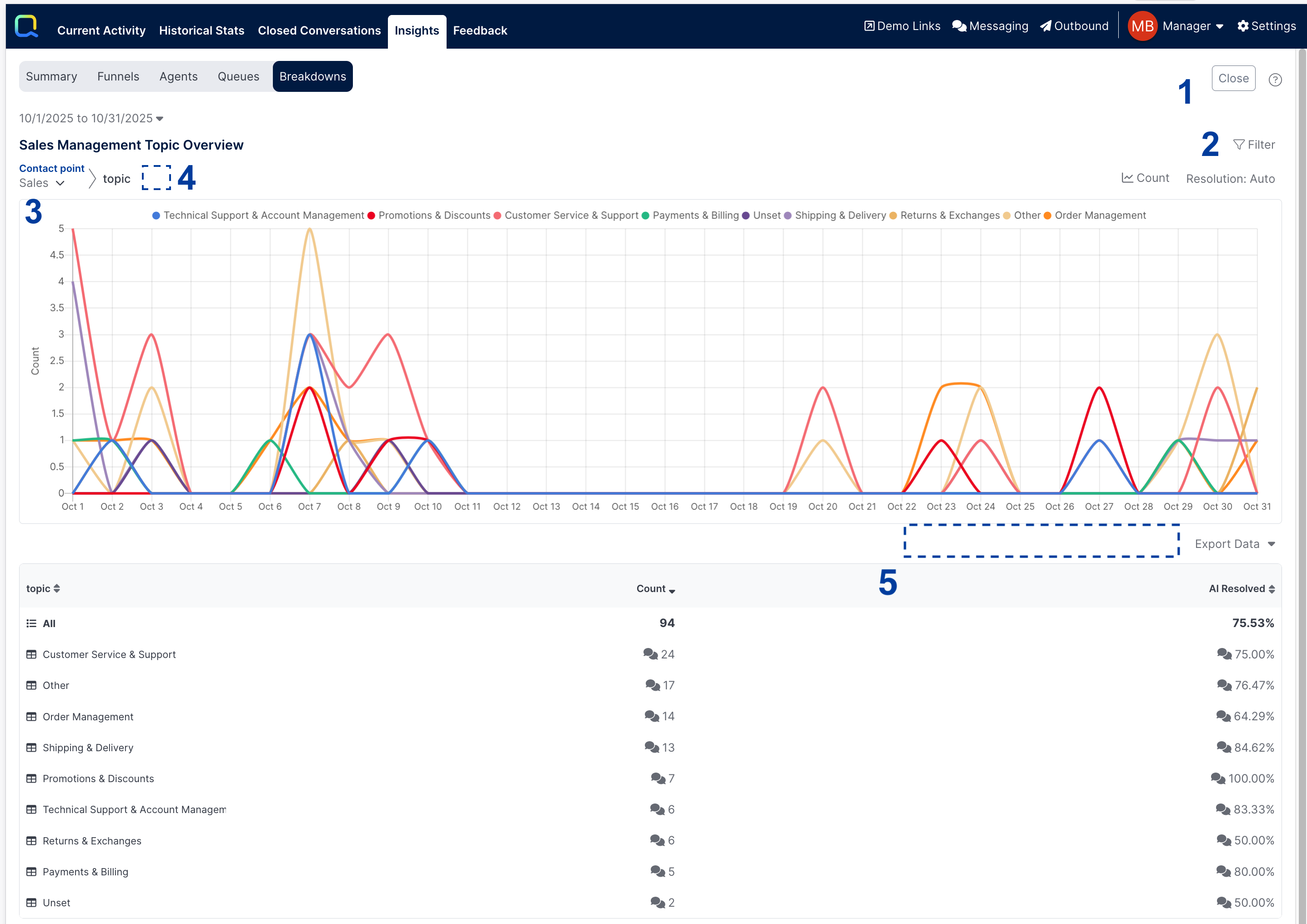 Admins can create and save different Breakdown Reports that highlight different metrics for different lines of business. Those can then be shared with Admins, Staff Admins & Managers within your organization.