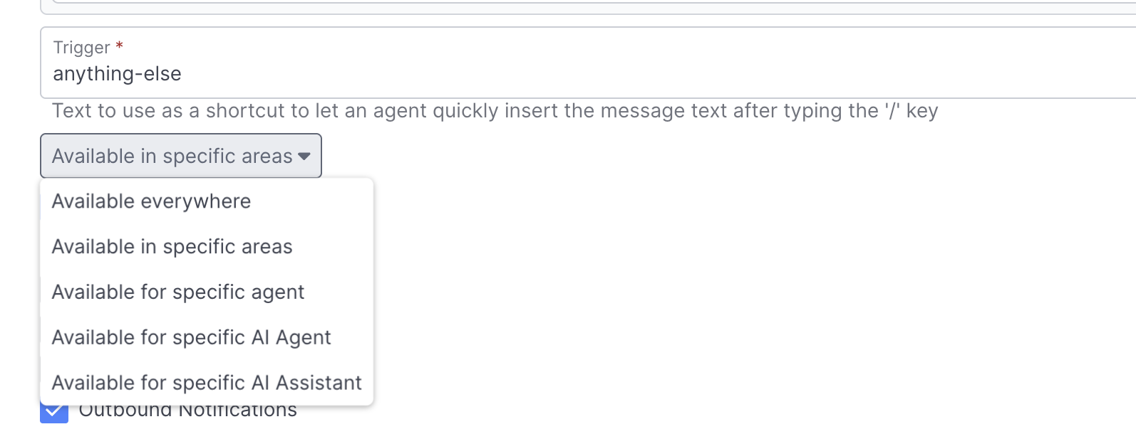When creating a Message that is available everywhere, a Trigger must be defined for use in Agent Conversations, Outbound Notifications, and Start Conversation: