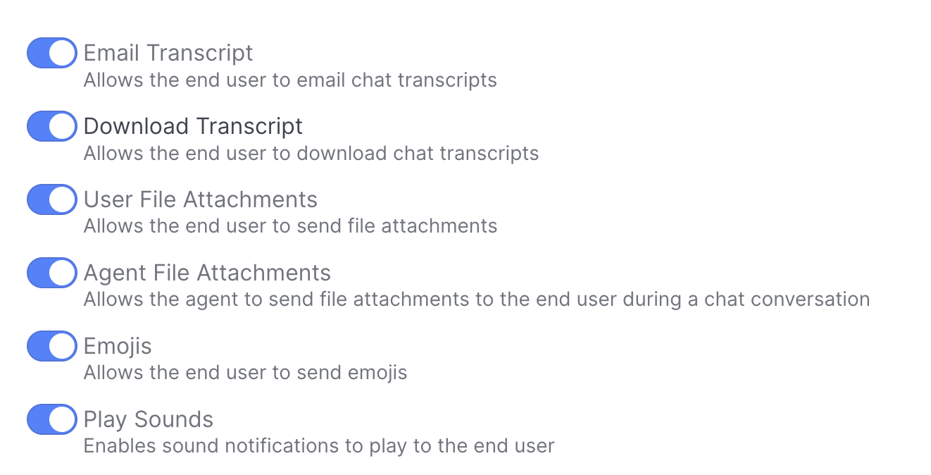 Sound notifications for the end user bring attention to notifications generated by the web chat. Toggle this off to disable sounds.